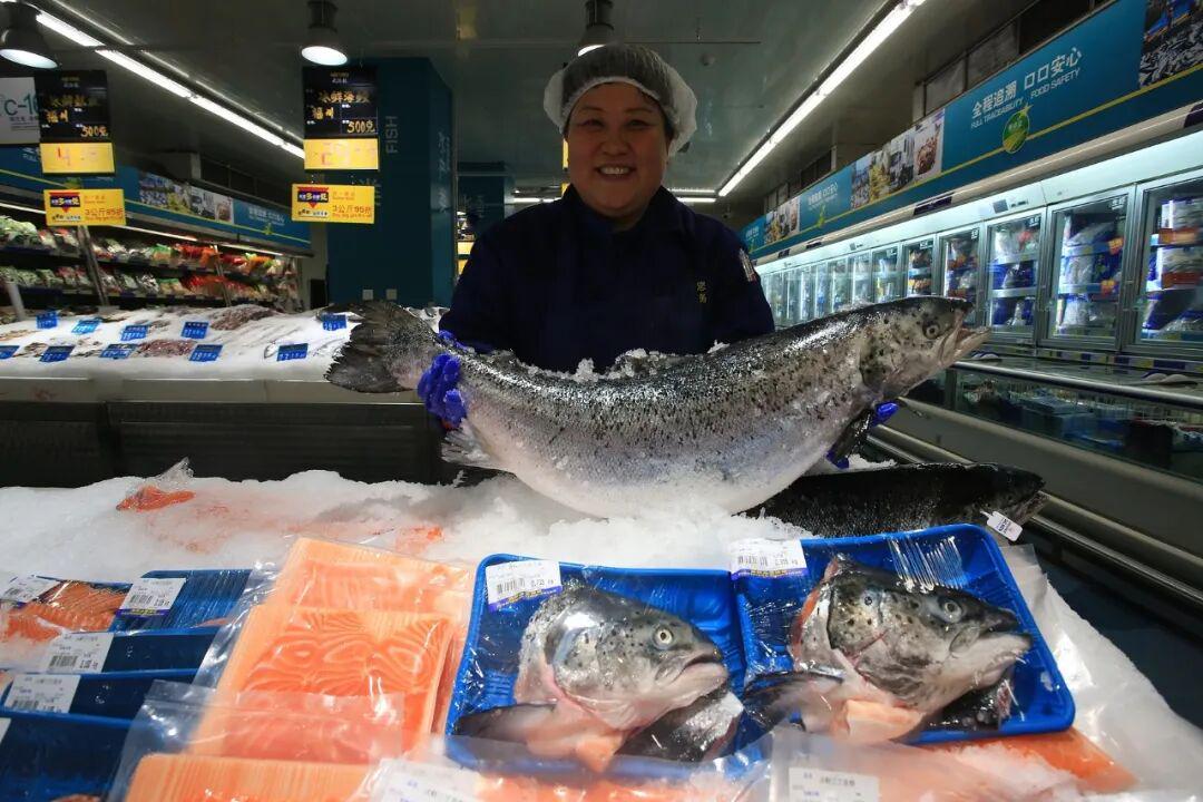 其实,中国早就是三文鱼消费力极强的国家。2023年,中国超越日本和韩国,成为挪威冰鲜三文鱼在亚洲最大的市场;与此同时,中国的三文鱼消费很依赖进口,每年进口数量已经超过10万吨。