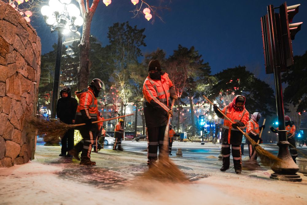 与此同时,1.5万名环卫工人根据预案有序上岗。人工清扫与机械化作业科学配合,确保在市民清晨出行前,道路基本恢复畅通。