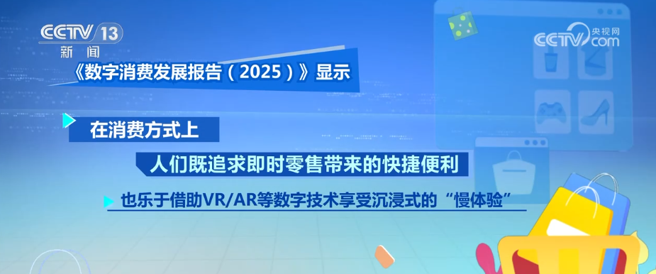 更值得关注的是,我国数字消费正迈入“实用”与“体验”并重的新阶段。一方面,消费者更加理性,注重性价比和平价替代;另一方面,也愿意为兴趣、情绪价值和沉浸式体验付费。即时零售满足“快消费”需求,VR、AR、XR等技术则推动线下“慢体验”升温。