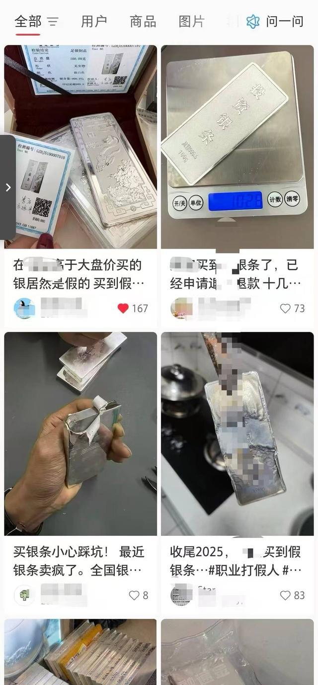 记者梳理微博、小红书、抖音等社交平台的相关话题发现,有许多关于网购白银遭遇骗局的吐槽,相关话题下的留言、分享累计超千条。发帖者既有试水小额投资的普通消费者,也有投入数十万的资深投资者;遭遇的问题除了假货泛滥、延迟发货,还包括货不对板、鉴定证书造假、平台售后推诿等。不少网友在评论区分享维权经验,也有人无奈表示“吃一堑长一智,再也不敢网购贵金属”。