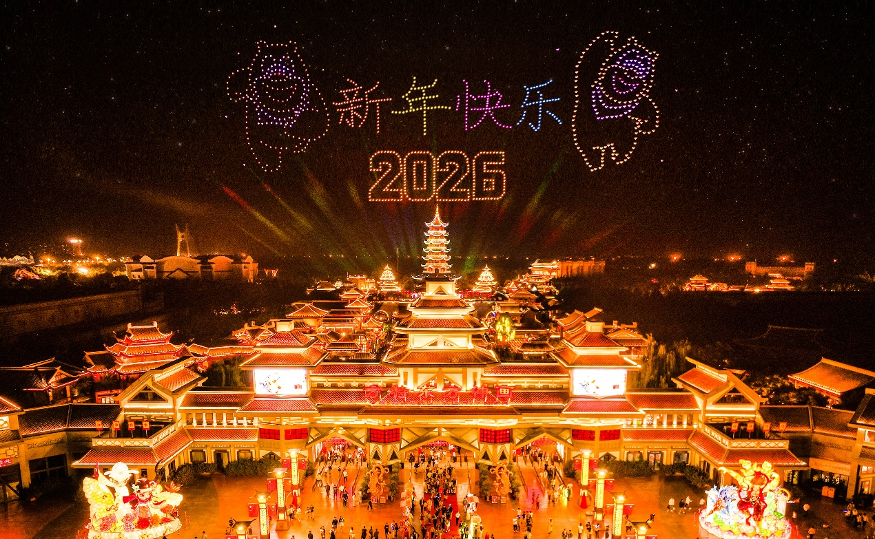 跨年夜当晚,全国多地方特主题乐园延时营业至零点,音乐盛典、蹦迪派对、摩天轮倒计时、心愿气球放飞等活动接连登场。济南、大同、青岛、赣州、沈阳等地园区邀请百大DJ、知名歌手和人气乐队助阵,结合无人机灯光秀、烟花盛放与光影倒计时,营造极具仪式感的迎新时刻。